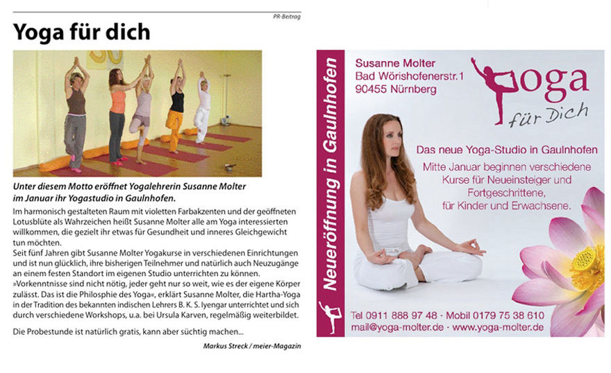 Ich lade Dich herzlich ein, an einer Probestunde teilzunehmen, um herauszufinden, ob Yoga für Dich der richtige Weg ist. Probiere es einfach aus. Ich freue mich auf Dich! Deine Susanne